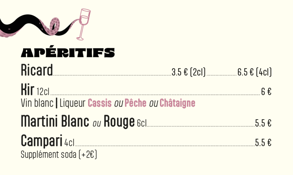 4.3 € (25cl) – 8.2 € (50cl ) – 2″.6 € (1L )